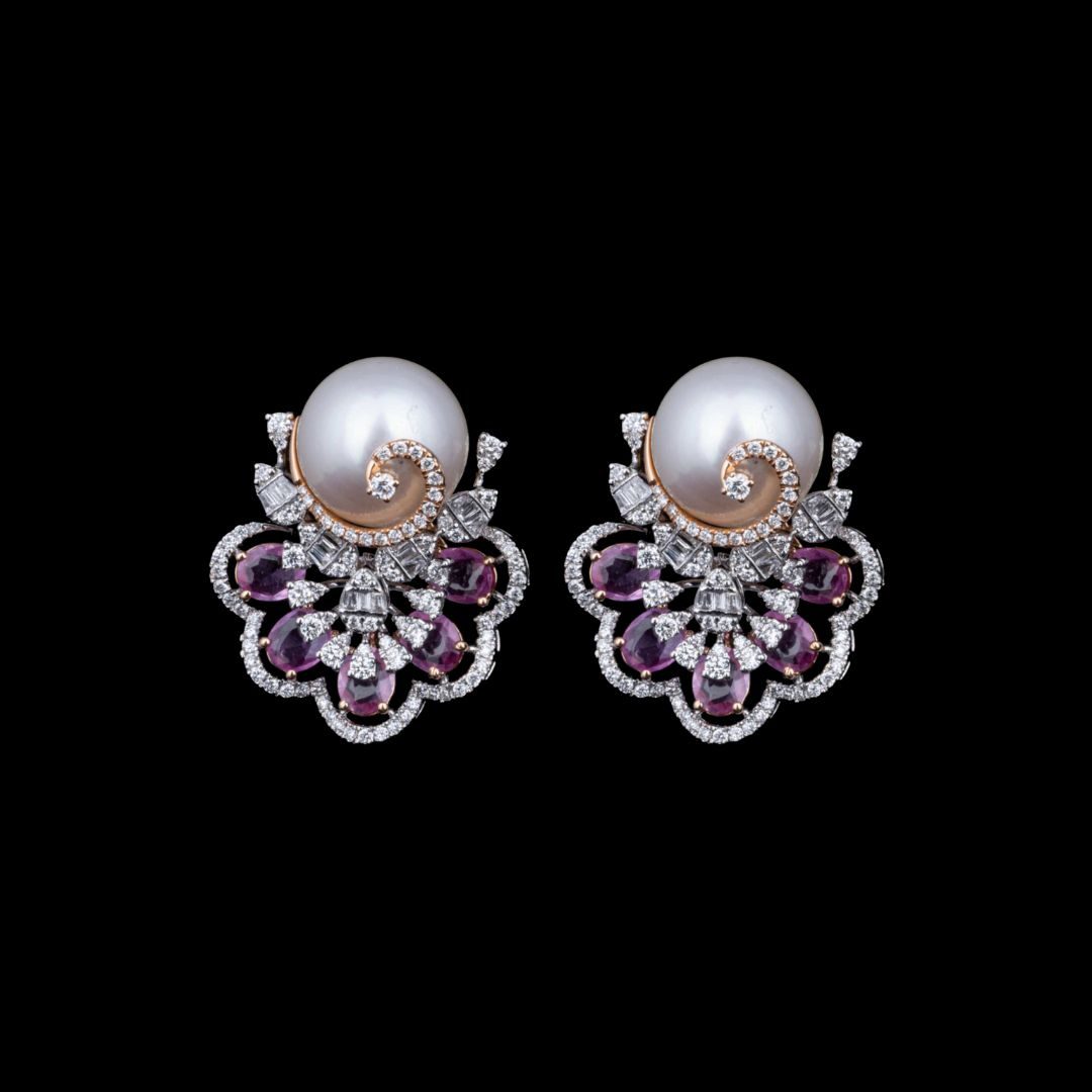 The ER0028 is a luxurious and multi-dimensional design that is sure to impress. The combination of round, baguette, and fancy-cut diamonds, pearls, and color stones creates a visually stunning and captivating piece. The earrings are perfect for special occasions, parties, or everyday wear.