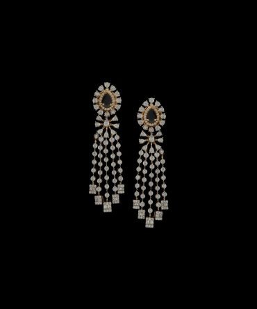 These long diamond earrings are perfect for Diwali celebrations, bringing together tradition and sparkle in one timeless piece of jewellery. The bush design creates a soft yet striking effect, while the drop pearl adds a classic touch to the overall look. The earrings are light and comfortable, designed for all-day wear during the festive season, whether it’s for family gatherings, Diwali pujas, or evening celebrations.