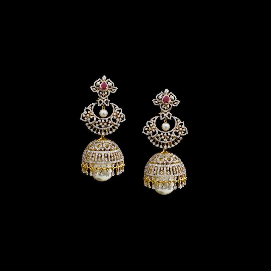 Elevate your style with PER0769 from Kothari Jewellers, a three-layered diamond jhumki that harmonizes the brilliance of diamonds, the passion of ruby, and the timeless allure of pearls. This exquisite piece is more than a mere accessory; it is a symphony of design, each layer telling a unique story of elegance and sophistication.
