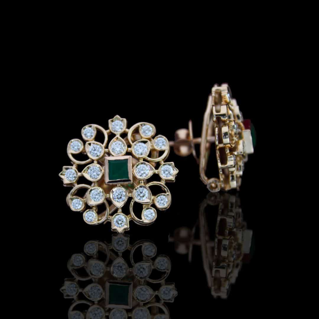 Behold the allure of PER0977 by Kothari Jewellers—a diamond stud that captivates with a square-shaped emerald at its center. This exquisite piece is a harmonious blend of diamonds and emerald, radiating a timeless elegance that transcends conventional stud designs.
