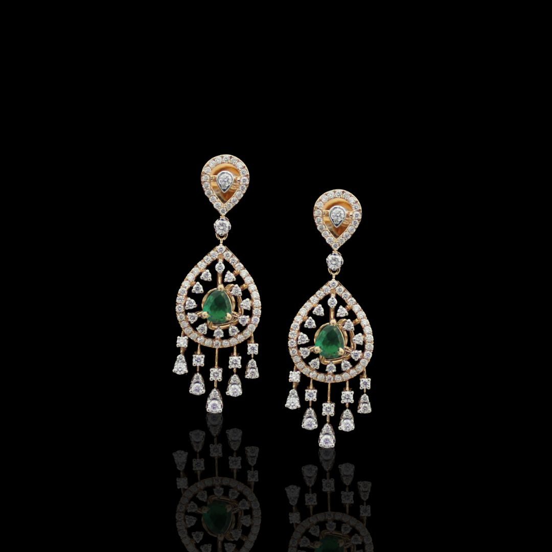 PER1644 | Intricate Diamond & Emerald Earrings | Kothari Jewellers