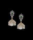 Looking for jhumkis that will make a statement at your next special event? The PER1827 jhumki from Kothari Jewellers offers a beautiful balance of diamonds, emeralds, and a hanging pearl, all set in rich 18kt gold. These diamond jhumkis are the ideal choice for anyone seeking to add a touch of luxury and tradition to their festive look, especially for cultural events like weddings, family gatherings, or seasonal festivals. Designed with special occasions in mind, the PER1827 jhumki will catch the eye while complementing your outfit, offering both traditional charm and modern flair.