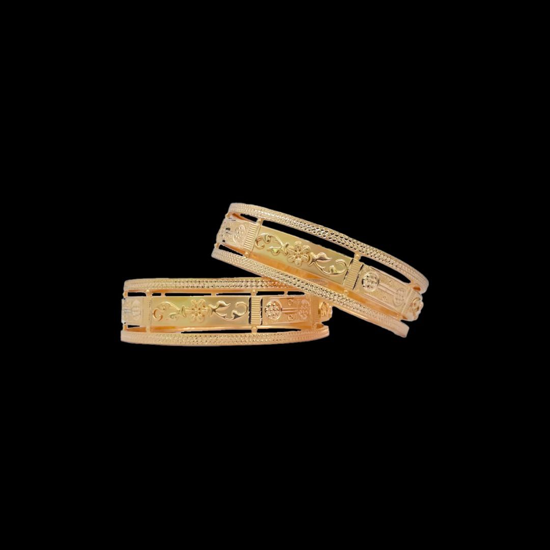 Crafted in 22-karat gold, these bangles exude a sense of opulence and timeless appeal. The high-quality gold ensures durability and longevity, making them a valuable investment.