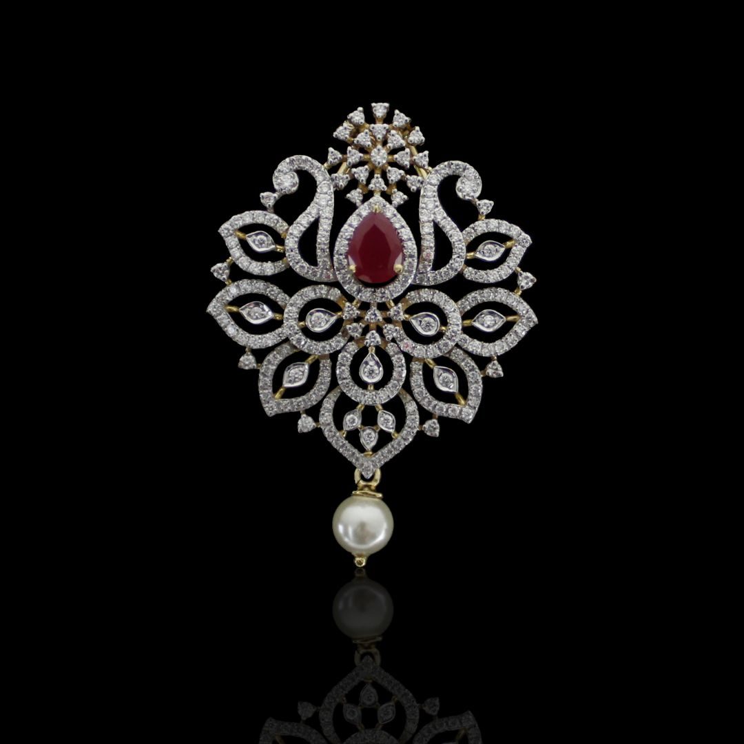Crafted with precision and care, the PPN-0669 pendant is a testament to the skill and artistry of Kothari Jewellers. Each diamond and ruby is meticulously set by hand, ensuring a flawless and seamless finish. The intricate detailing of the pendant is achieved through a combination of traditional craftsmanship and modern techniques, resulting in a piece that is as beautiful as it is durable.